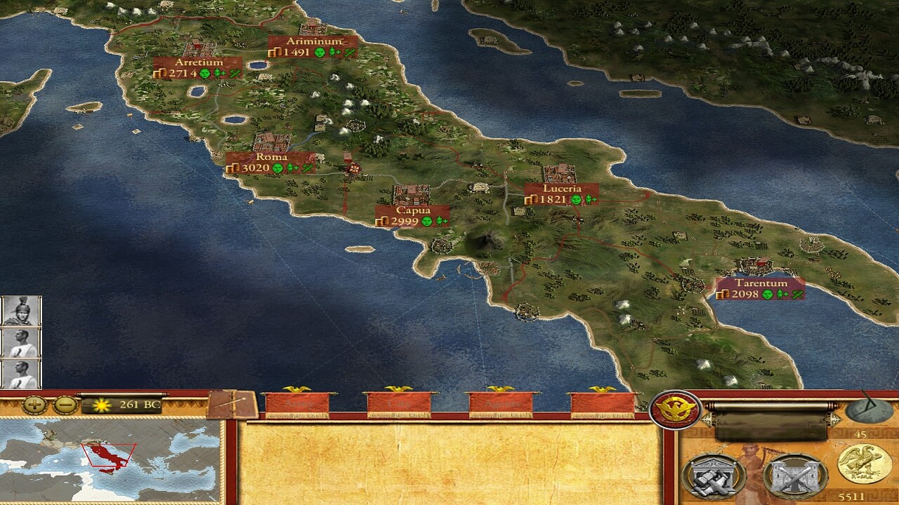 갑자기 연재를 하고 싶어진거라 이전의 사진이 없어 45턴부터 시작합니다. 난이도는 노말/노말이고, 카르타고와의 제1차 포에니 전쟁을 몇턴 전부터 시작했습니다.